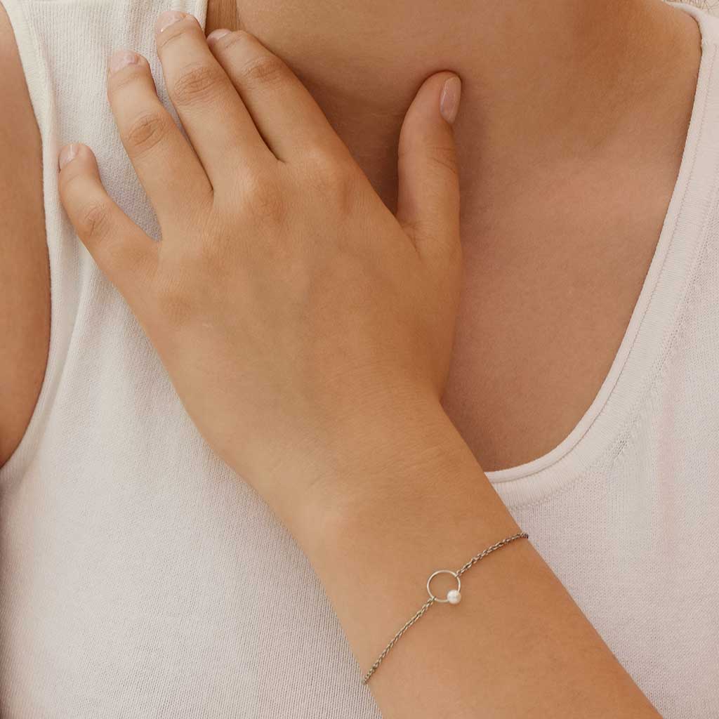 Die einfache Kreisform, die feine Rundankerkette und die hochwertige weiße Süßwasserperle machen dieses Damenarmband zu einem Schmuckstück, an dem nichts Überflüssiges ist. Leicht und angenehm zu tragen, wird dieses Armband der perfekte Begleiter für Ihren Tag!