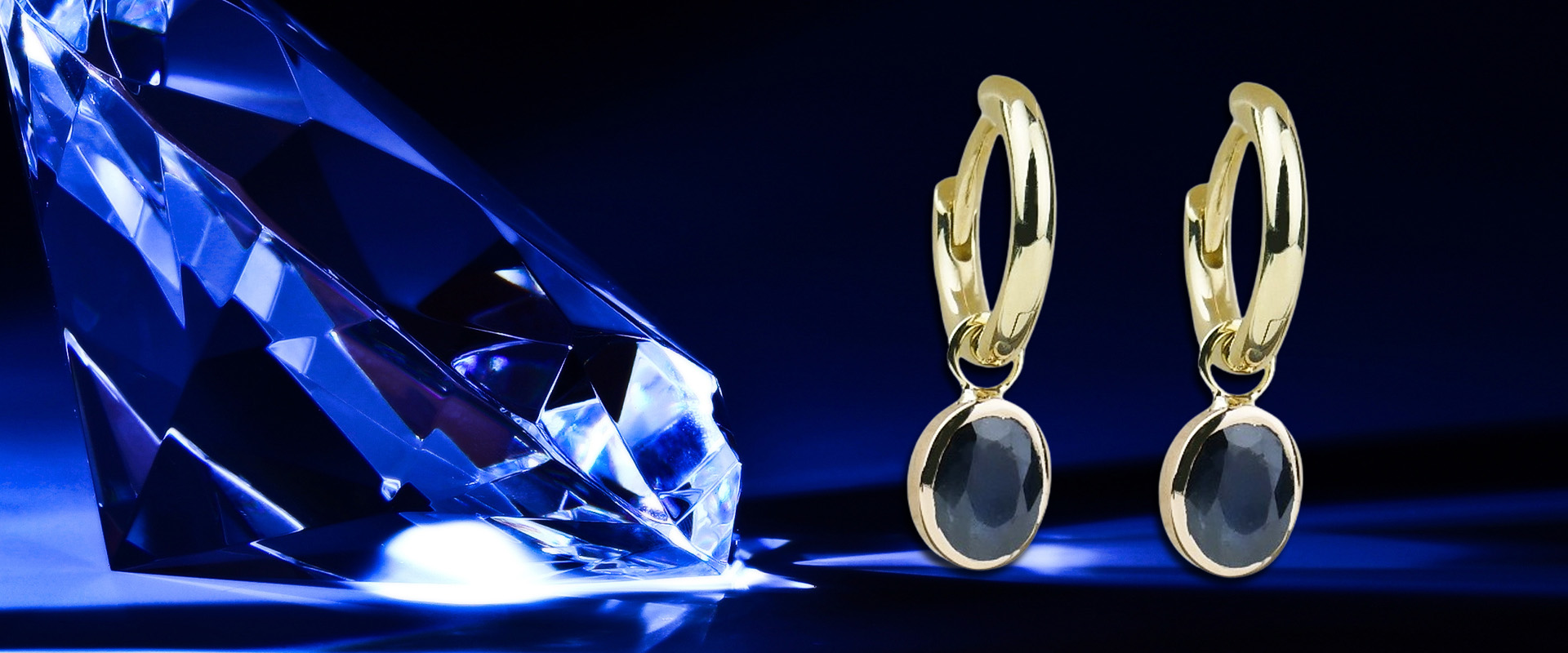 Die hochwertigen, farbintensiven Safire (insgesamt 2,62 ct.) haben einen Durchmesser von 5 mm und werden jeweils von zwei kleinen Diamanten eingerahmt (insgesamt 0,02 ct., w/si).