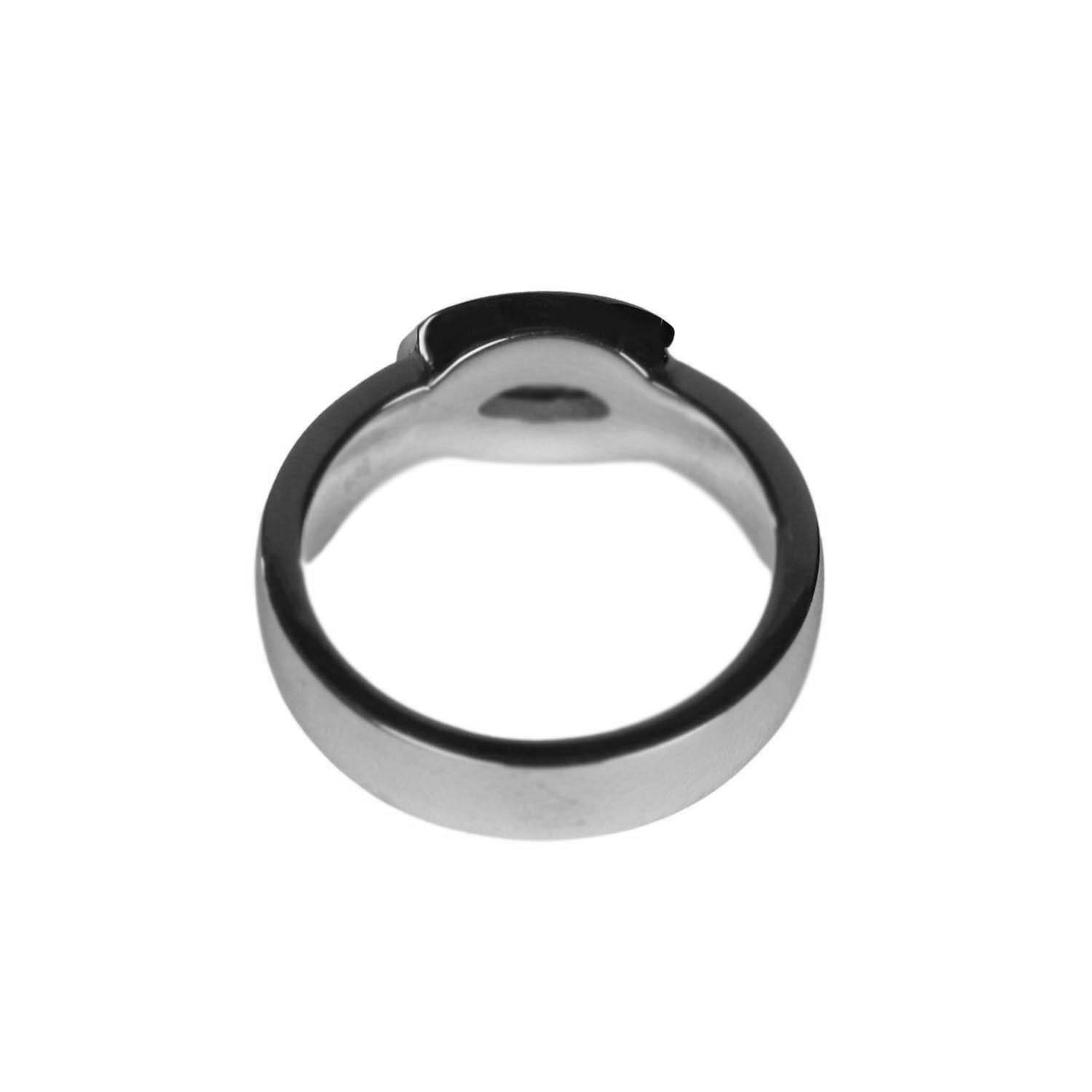 Der Ring ist kein "Leichtgewicht", denn er wiegt 11,4 g. Die Ringschiene ist 5,5 mm breit. Oben ist sie 2,5 mm stark, unten 2,2 mm.
