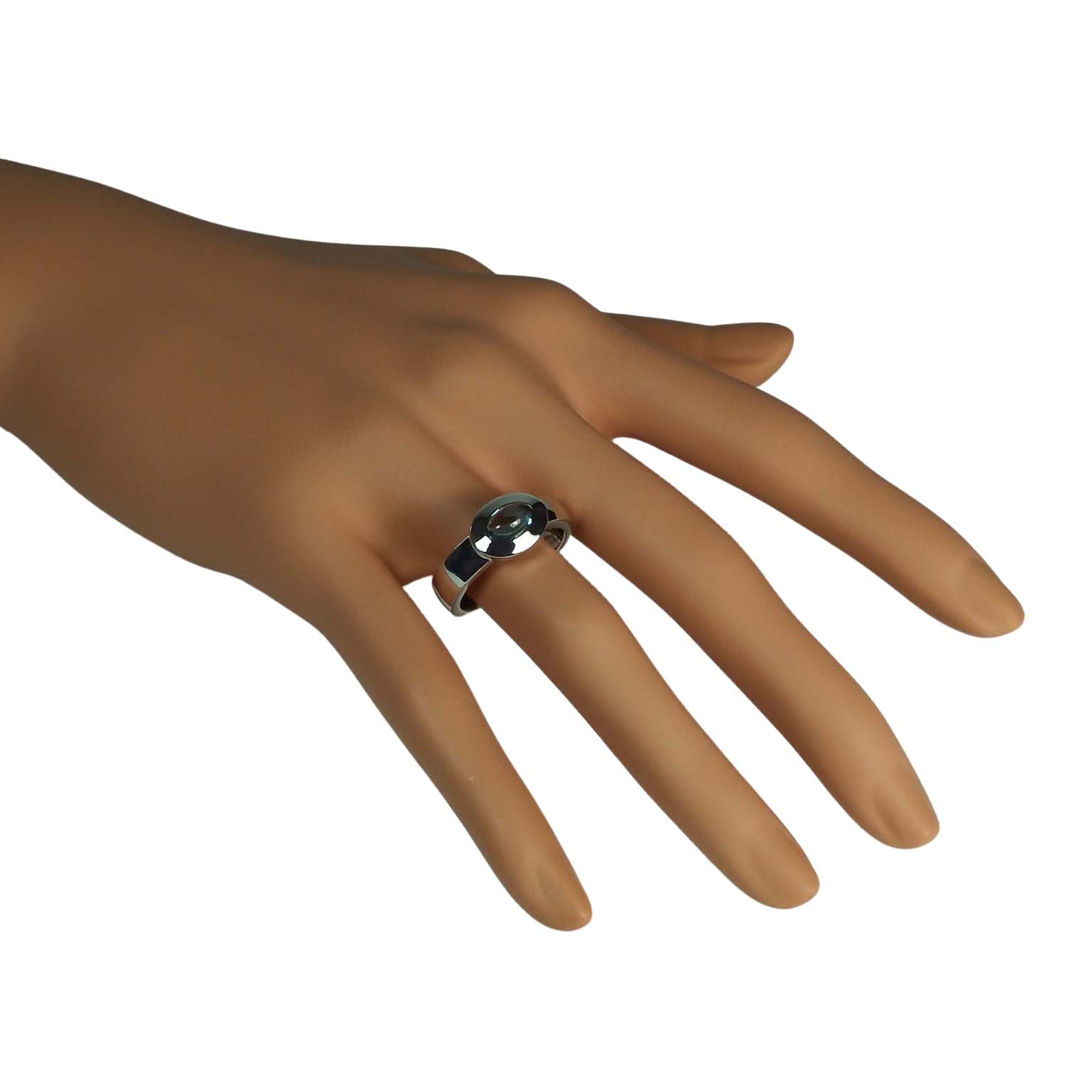 Produktinformationen "Damenring Weißgold 585/000 mit Blautopascabochon Goldschmiedearbeit"