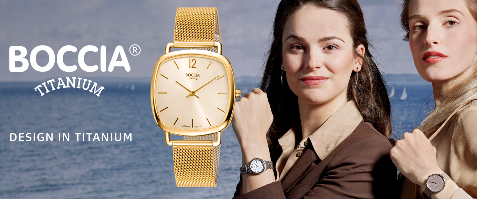 Das Uhrgehäuse der Boccia-Damenarmbanduhr besteht aus nickelfreiem Reintitan und ist für Allergiker bestens geeignet.
