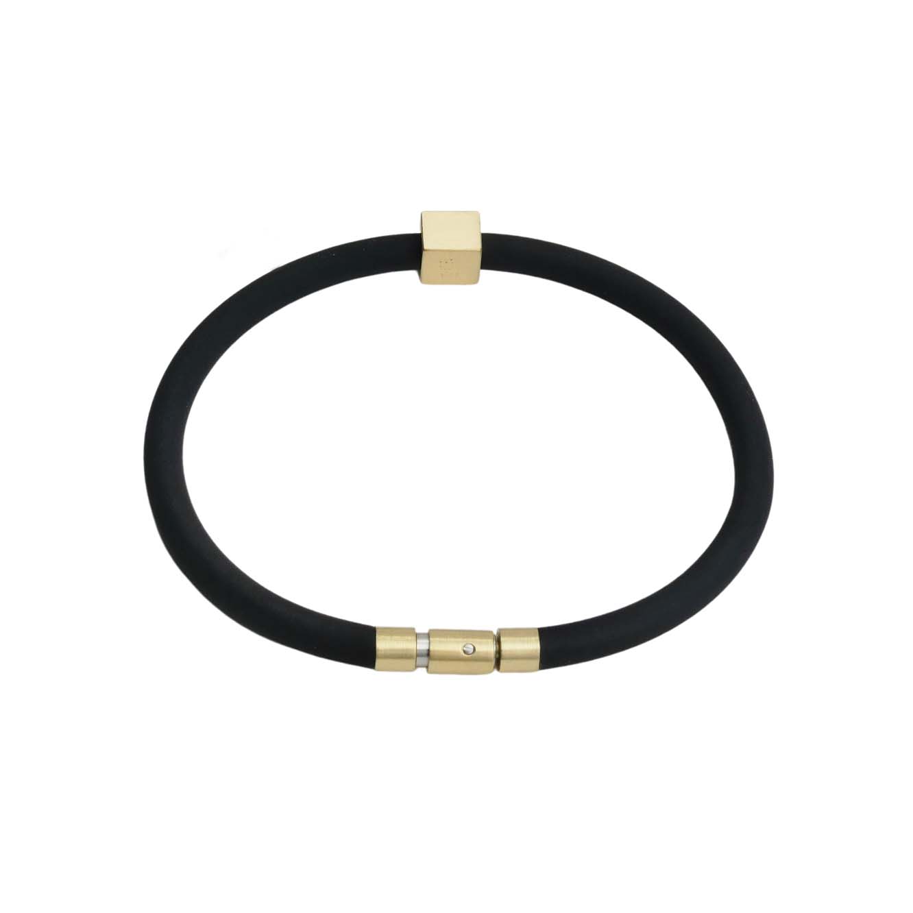 Bunz Armreif Gelbgold 750/000 und Kautschuk mit Brillanten
