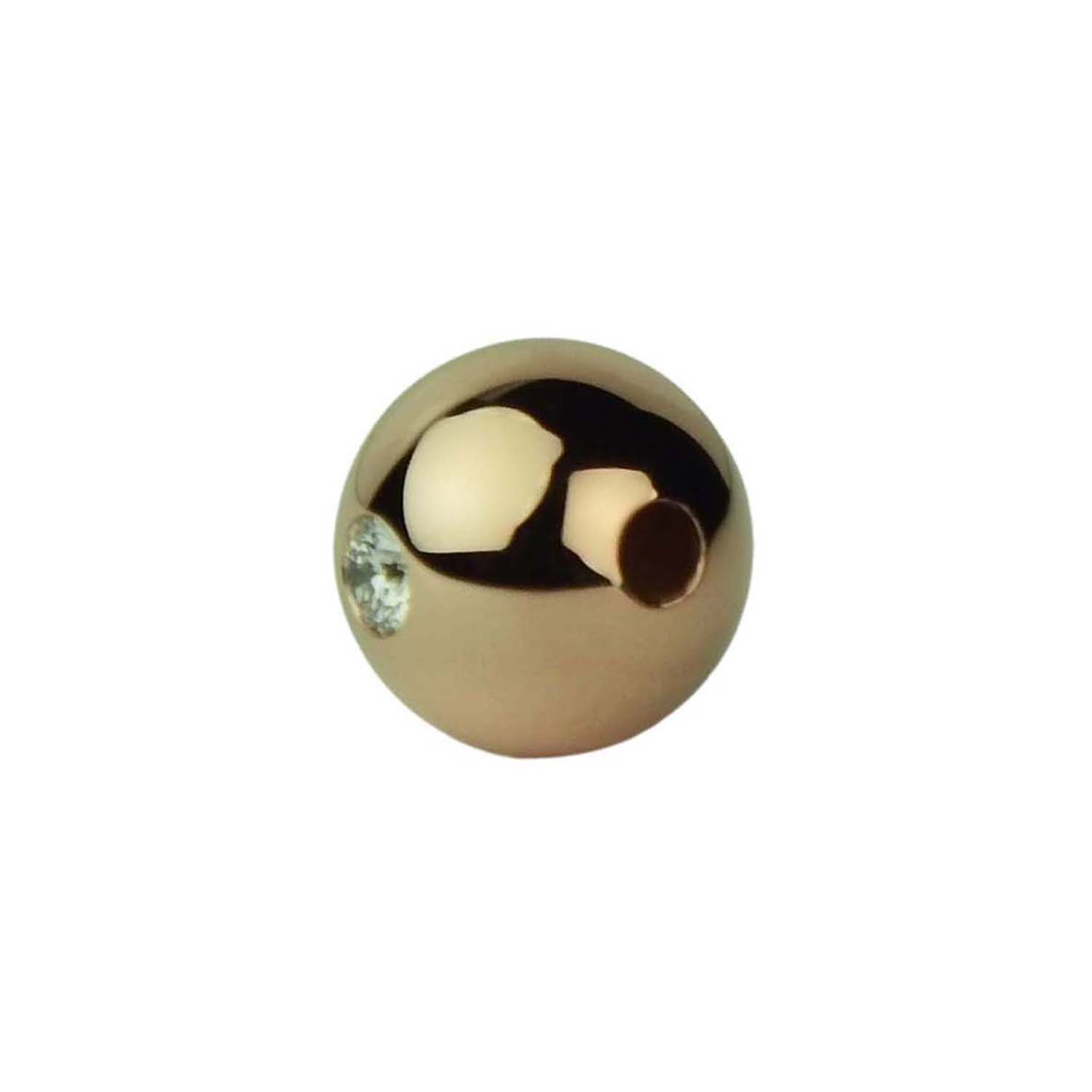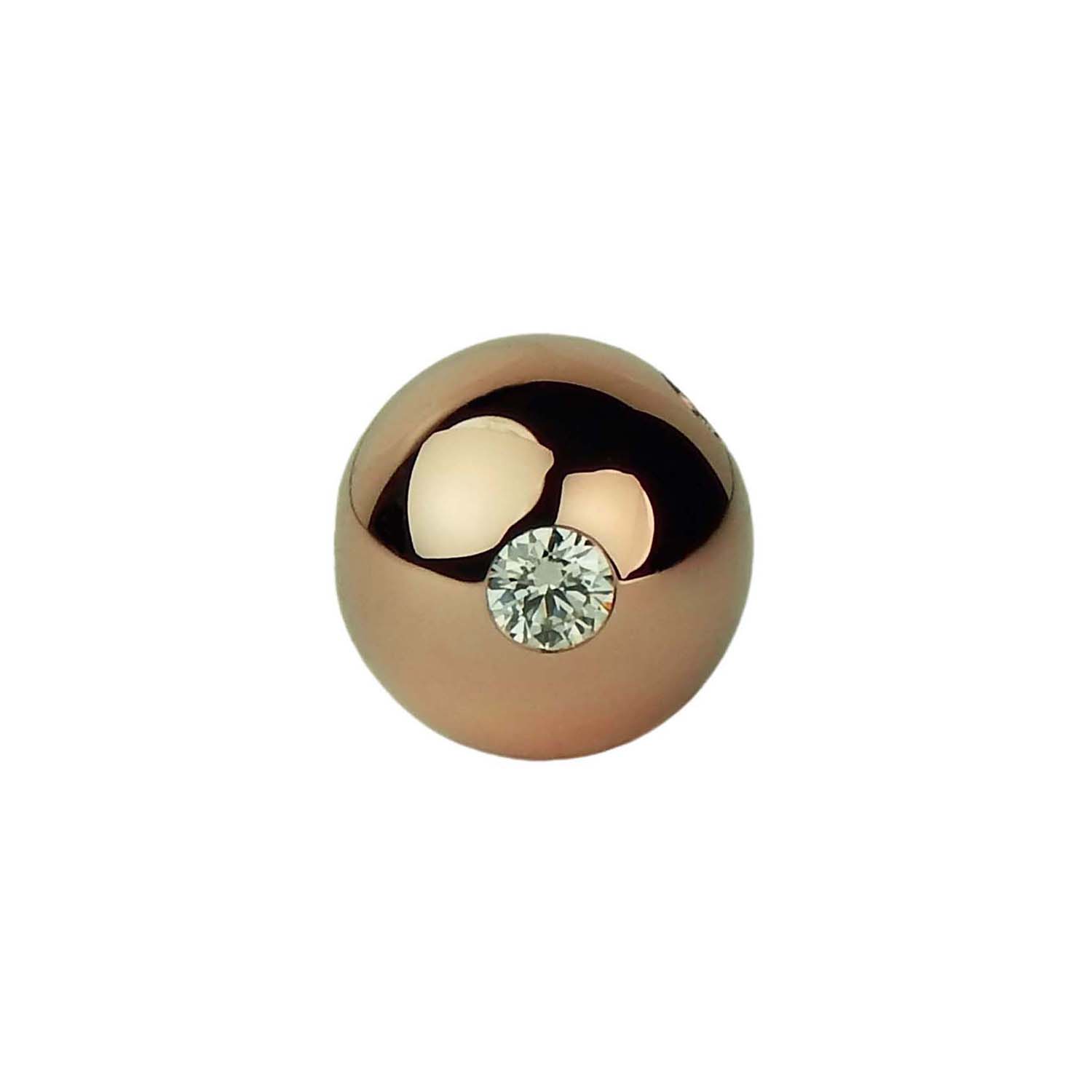 Die polierte Kugel strahlt in einem sanften Roségoldton, besetzt mit einem strahlenden Brillanten (0,06 ct., w/vsi).