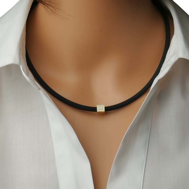 Bunz Collier Gelbgold 750/000 und Kautschuk mit Brillanten