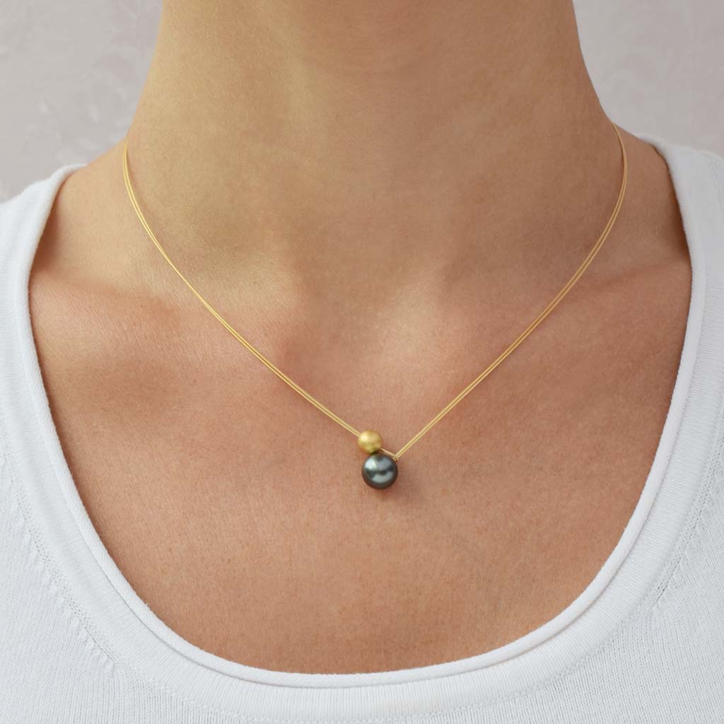 Das Collier Tahiti aus der Kollektion von Eva Strepp lenkt mit seinem klaren Design die Aufmerksamkeit auf die makellose Tahitiperle.