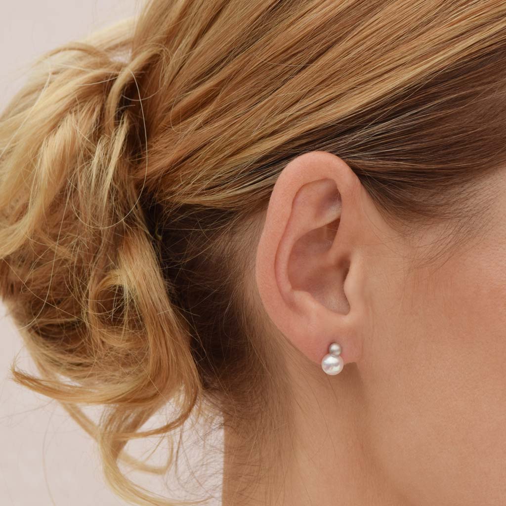 Die Ohrringe aus rhodiniertem Sterlingsilber zeigen eine moderne Interpretation von Perlschmuck. Das klare Design, das sich auf das Wesentliche beschränkt, macht die Ohrstecker zu glänzenden Begleitern Ihres Businessoutfits.
