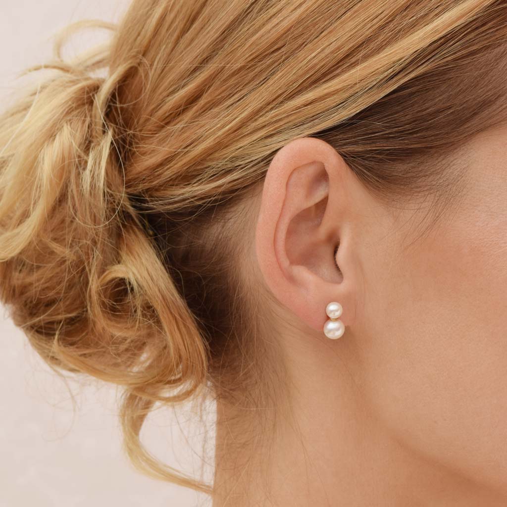Die Ohrringe zeigen eine moderne Interpretation von Perlschmuck. Das klare Design, das sich auf das Wesentliche beschränkt, macht die Ohrstecker zu glänzenden Begleitern Ihres Businessoutfits.