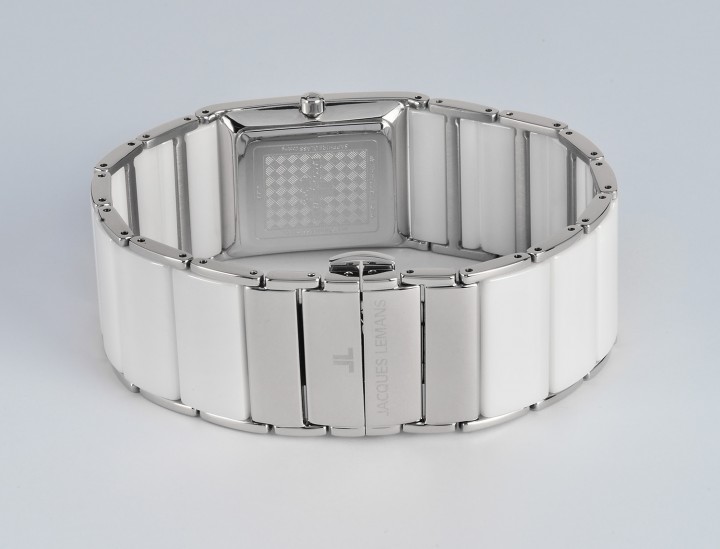 Das Modell Dublin besticht durch seine Schlichtheit und passt sich sehr gut dem Arm an. Weiße Hightechkeramik wurde mit poliertem Edelstahl kombiniert.