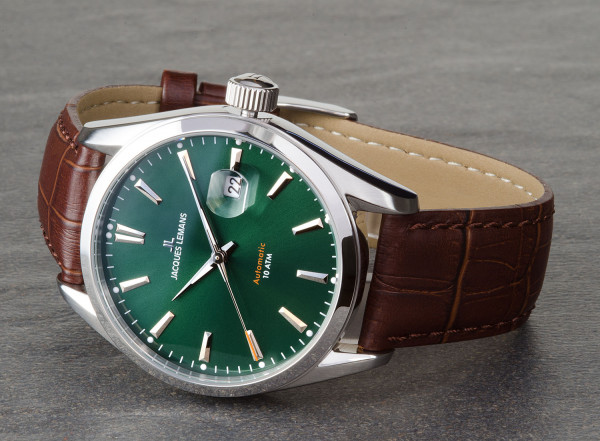 Das Modell Derby von Jacques Lemans besitzt ein Automatikwerk Miyota 8215.