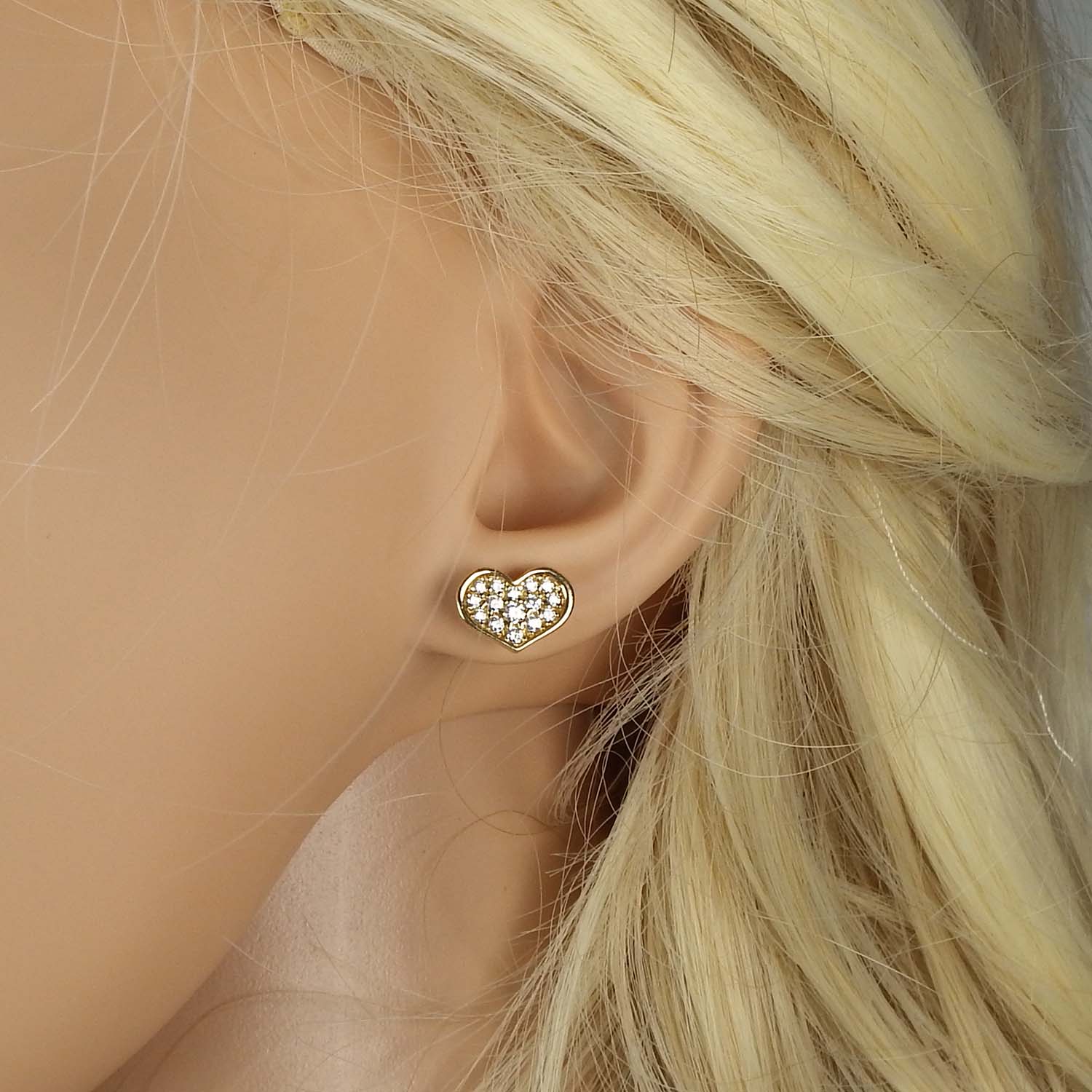 Herzförmige Ohrstecker aus goldplattiertem Sterlingsilber von Nomination mit Zirkonia. Die Steine sind von Hand gefasst und sind dadurch sehr haltbar.