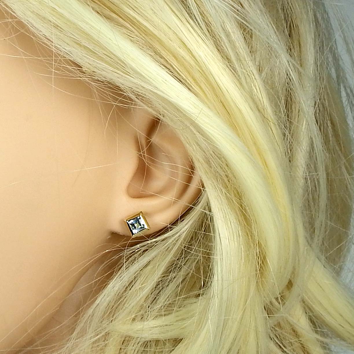 Klassische Ohrstecker von Quinn aus Gelbgold 585/000 mit zartblauen Blautopasen.