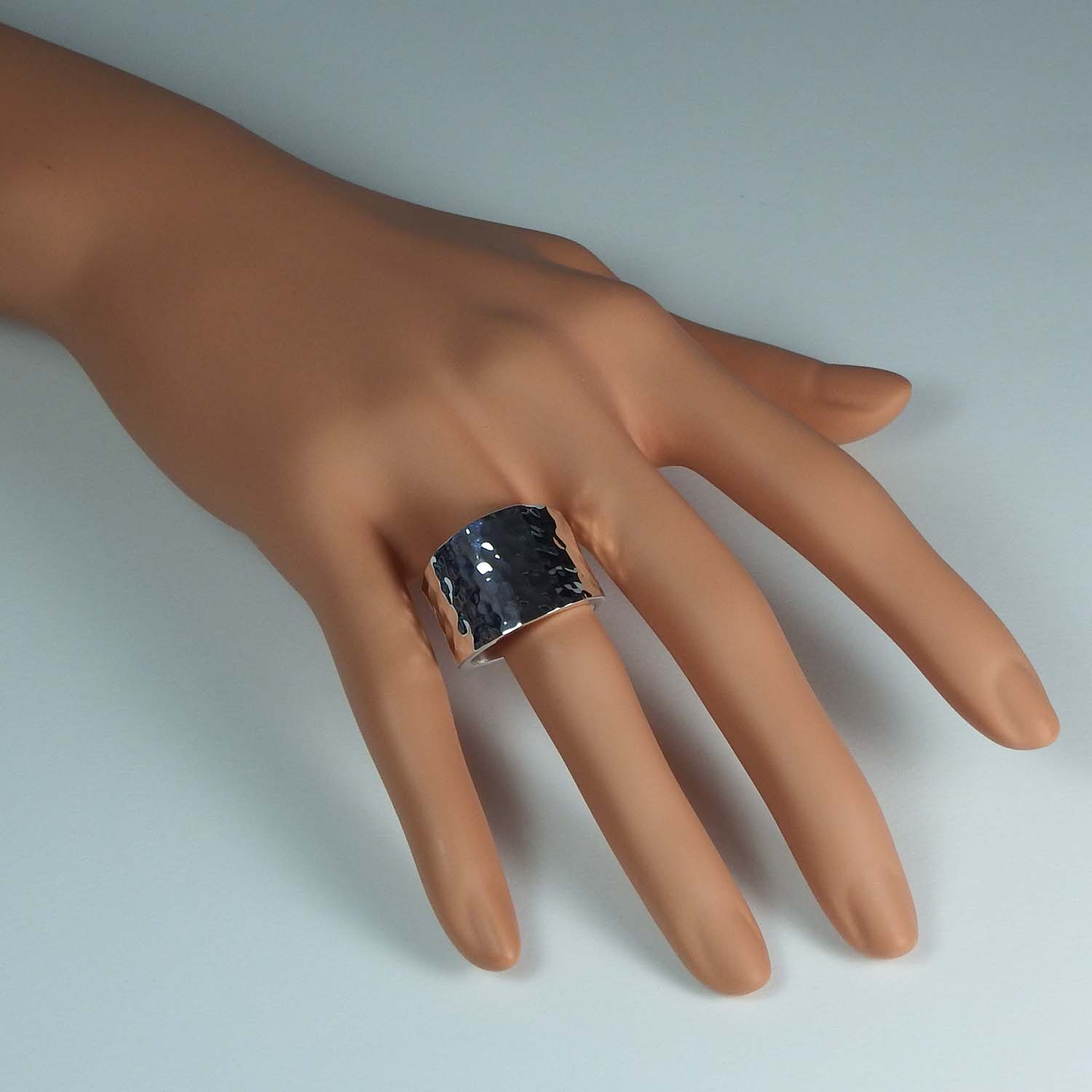 Der massive Damenring aus Sterlingsilber ist oben 16 mm breit.