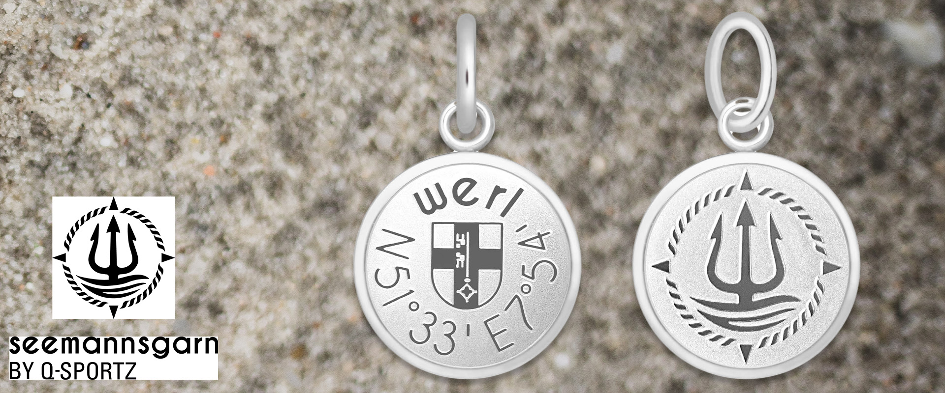Ein Seemannsgarn-Anhänger nur für Werl, passend für alle Seemannsgarn-Damenarmbänder! Der Anhänger trägt die Werler Koordinaten - auf einer Seite sind Längen- und Breitengrad eingeprägt. Der Durchmesser des seemännischen Edelstahl-Anhängers beträgt 17 mm.