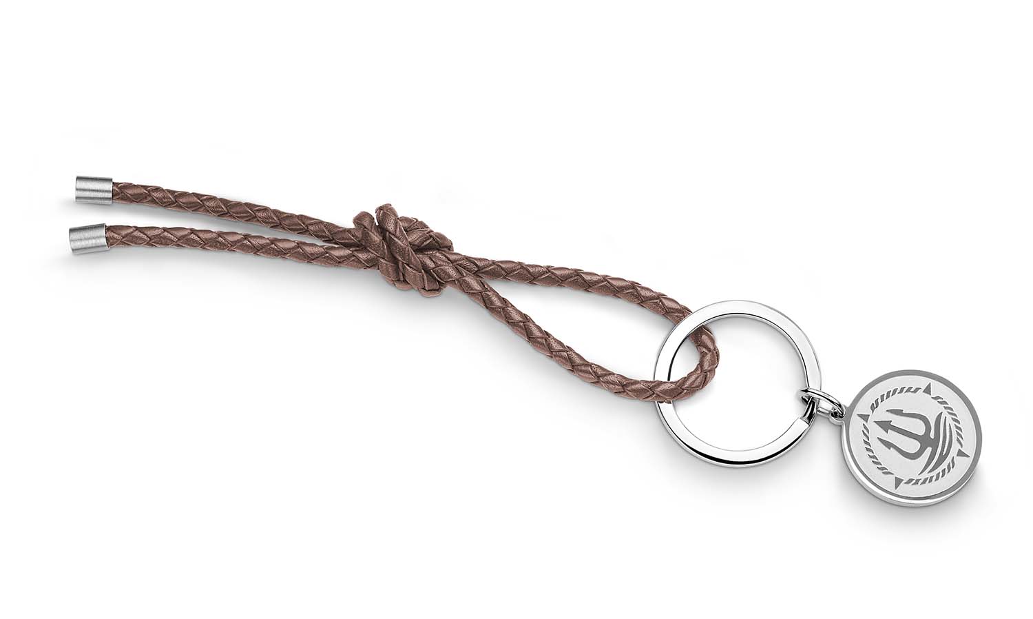 Maritimer Schlüsselanhänger 4 mm von Seemannsgarn aus geflochtenem, braunem Leder mit Edelstahl.