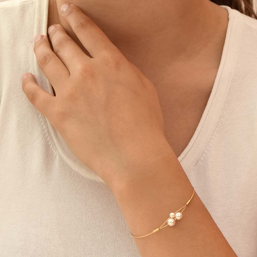 Der filigrane Perlarmreif Trio von Eva Strepp zeigt, wie schön Perlschmuck modern interpretiert werden kann.