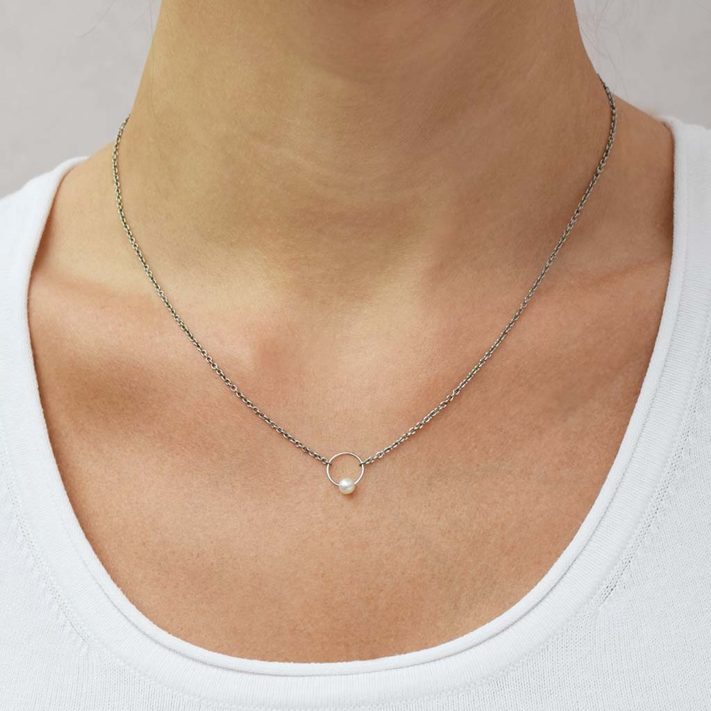 Die einfache Kreisform, die feine Rundankerkette und die hochwertige weiße Süßwasserperle machen diese Halskette zu einem Schmuckstück, an dem nichts Überflüssiges ist. Leicht und angenehm zu tragen, wird diese Kette der perfekte Begleiter für Ihren Tag!