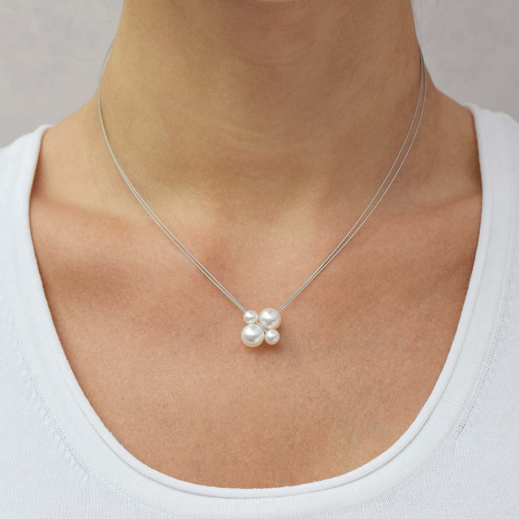 Das Collier Cross aus der Kollektion von Eva Strepp lenkt mit seinem klaren Design die Aufmerksamkeit auf die makellosen weißen Süßwasserperlen.