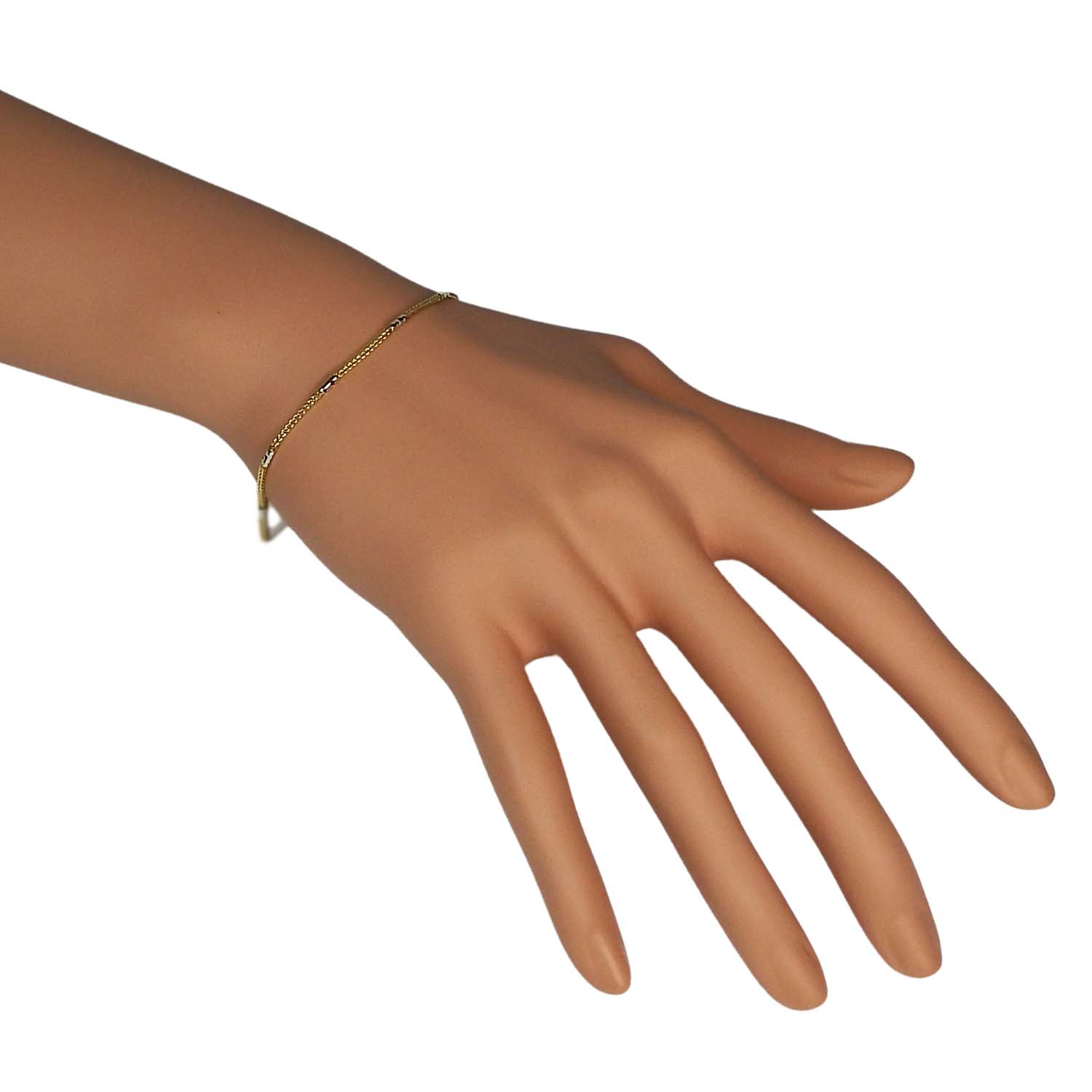 Das bezaubernde Armband aus Gelbgold und Weißgold 333/000 ist ca 1,5 mm breit und wird mit einem Karabiner geschlossen.