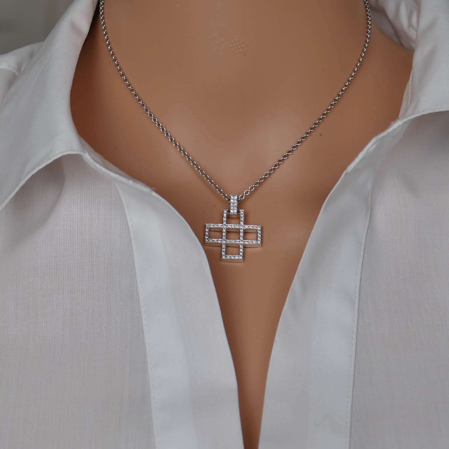 Dieses glamouröse Kreuz erzeugt durch die geschickt gefassten Brillanten ein wahres Feuerwerk an Brillanz.