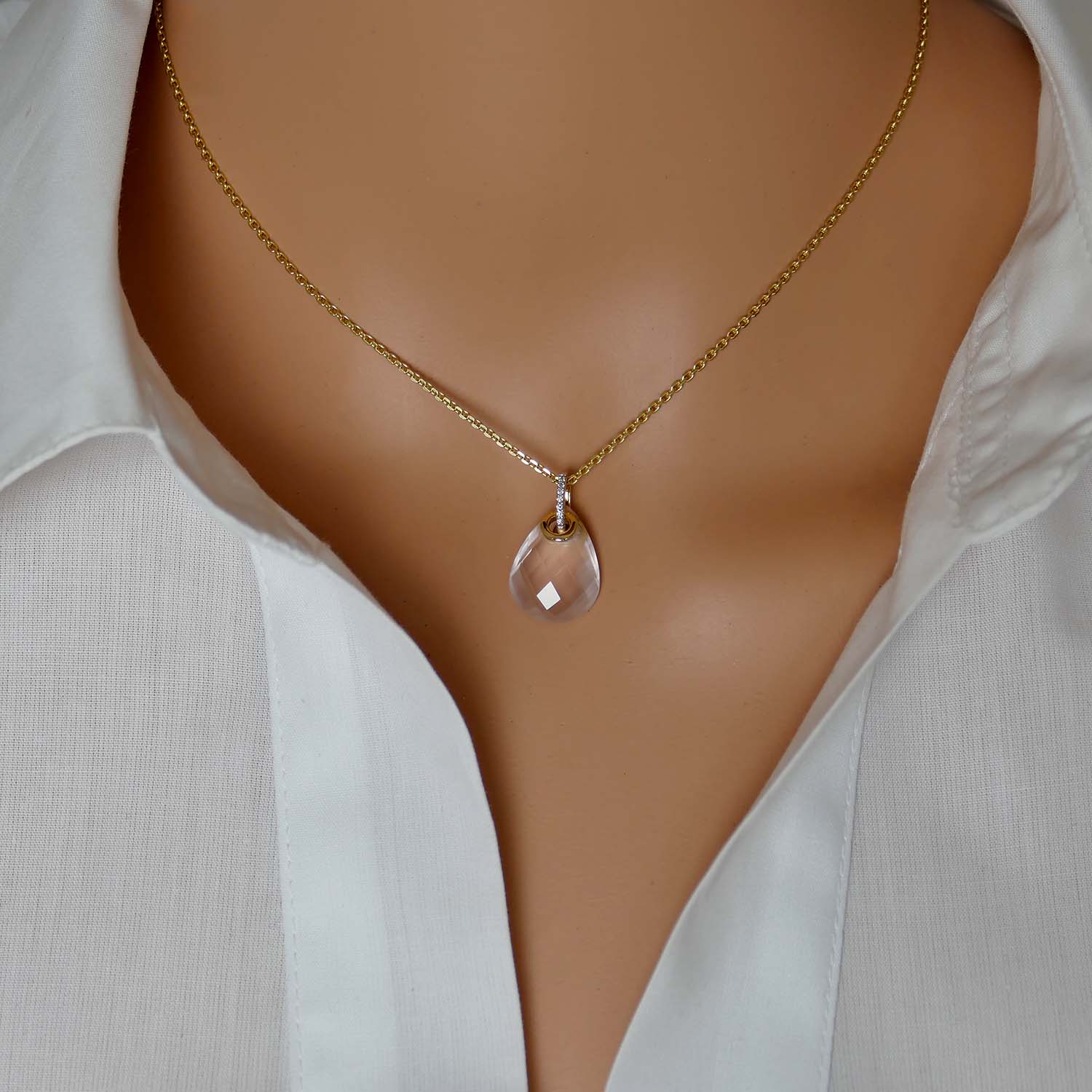 Produktinformationen "Rosenquarz-Anhänger Briolett Gelbgold 750/000 mit Brillanten"