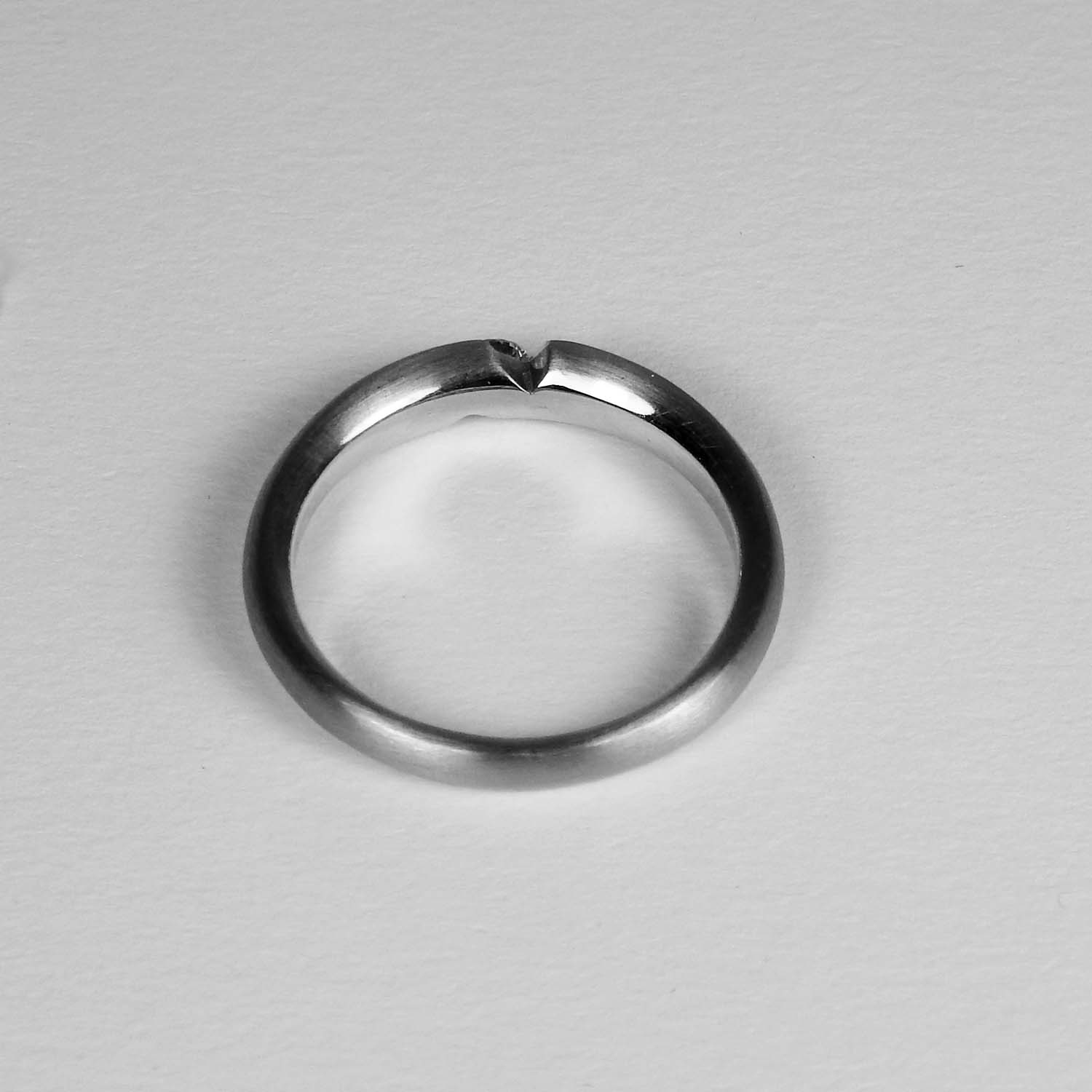 Schlicht und edel präsentiert sich dieser hochwertige Damenring in Spannringoptik. Die mattierte Oberfläche lässt den Diamanten besonders gut zur Geltung kommen.