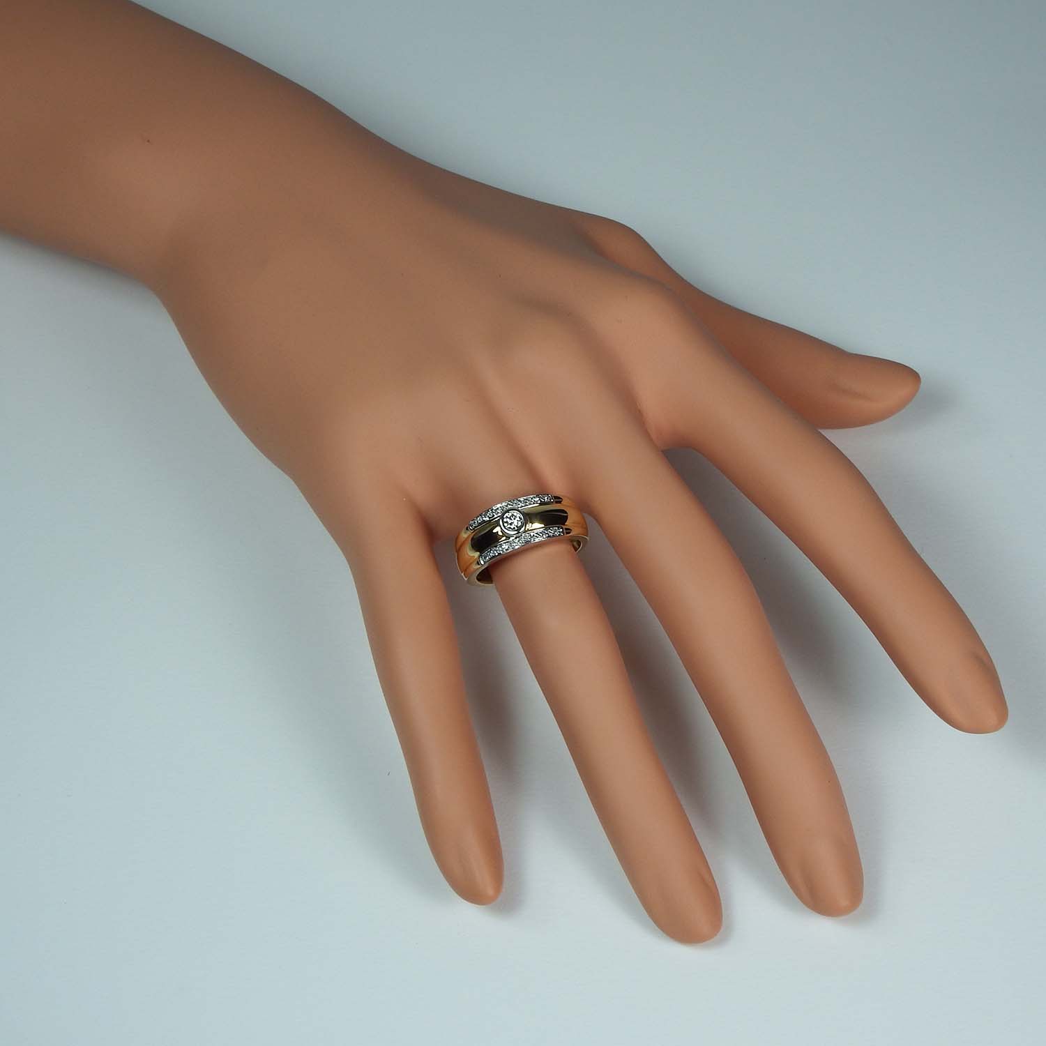 Der Ring ist in hochwertigem Gelbgold und Weißgold 750/000 gearbeitet und ist mit 16 Brillanten, zusammen 0,26 ct., w/si, besetzt.