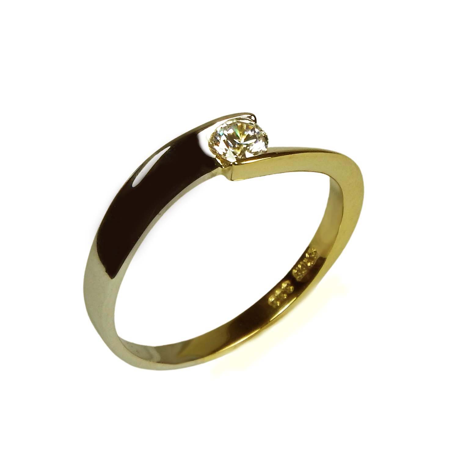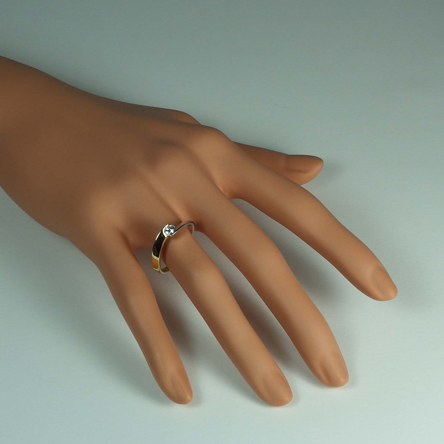 Der Zirkonia ist so gefasst, dass er "frei schwebend" erscheint. Er hat einen Durchmesser von 3,7 mm.