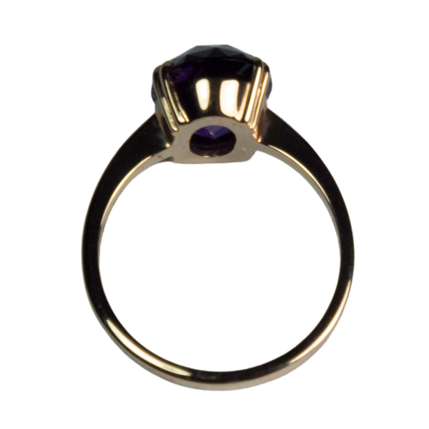 Eine zauberhafte Optik bewirkt die Farbzusammenstellung von lila mit Roségold in diesem klassischen Damenring.