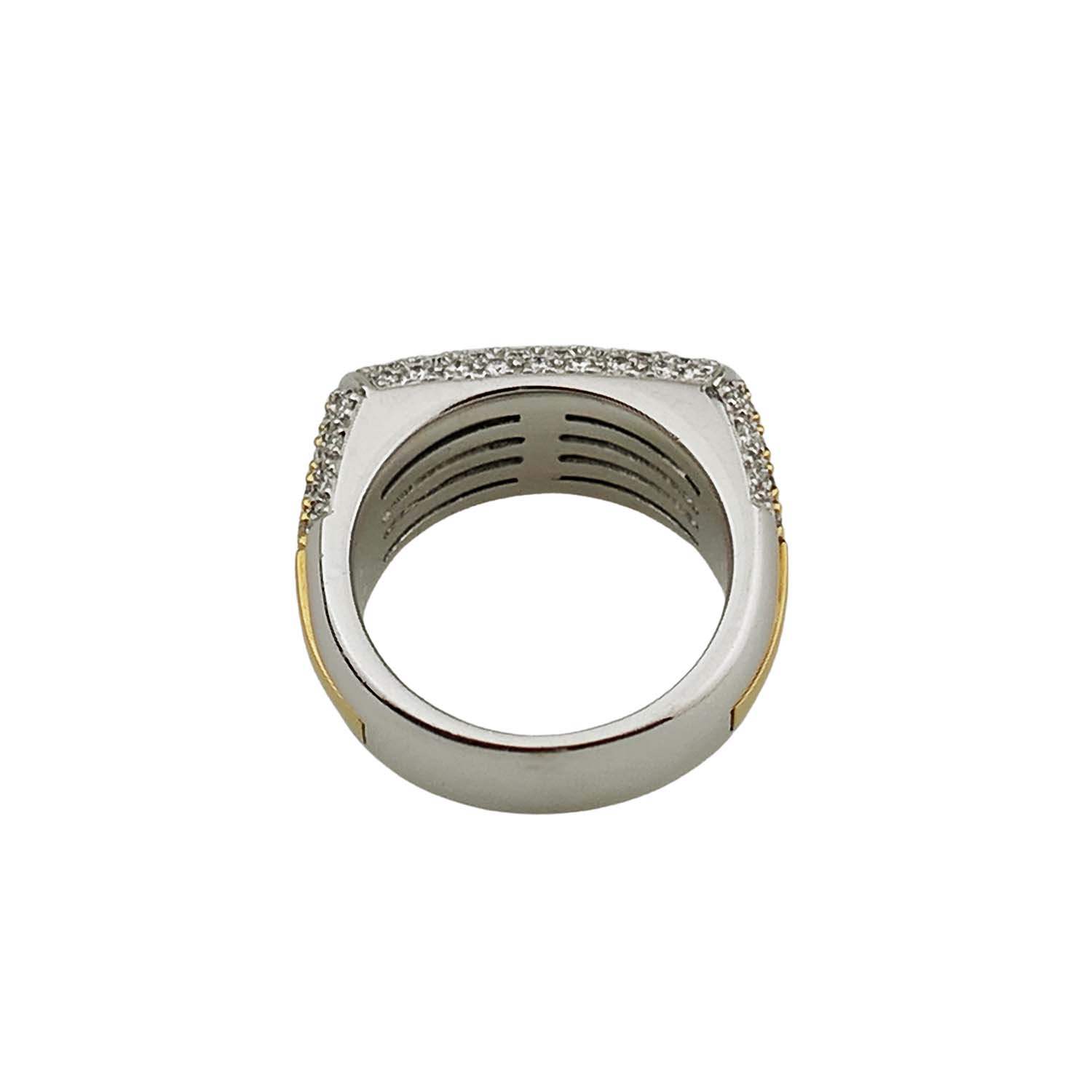 Die Zweifarbigkeit des Ring ermöglicht das Tragen sowohl zu Gelbgold- als auch zu Weißgoldschmuck.