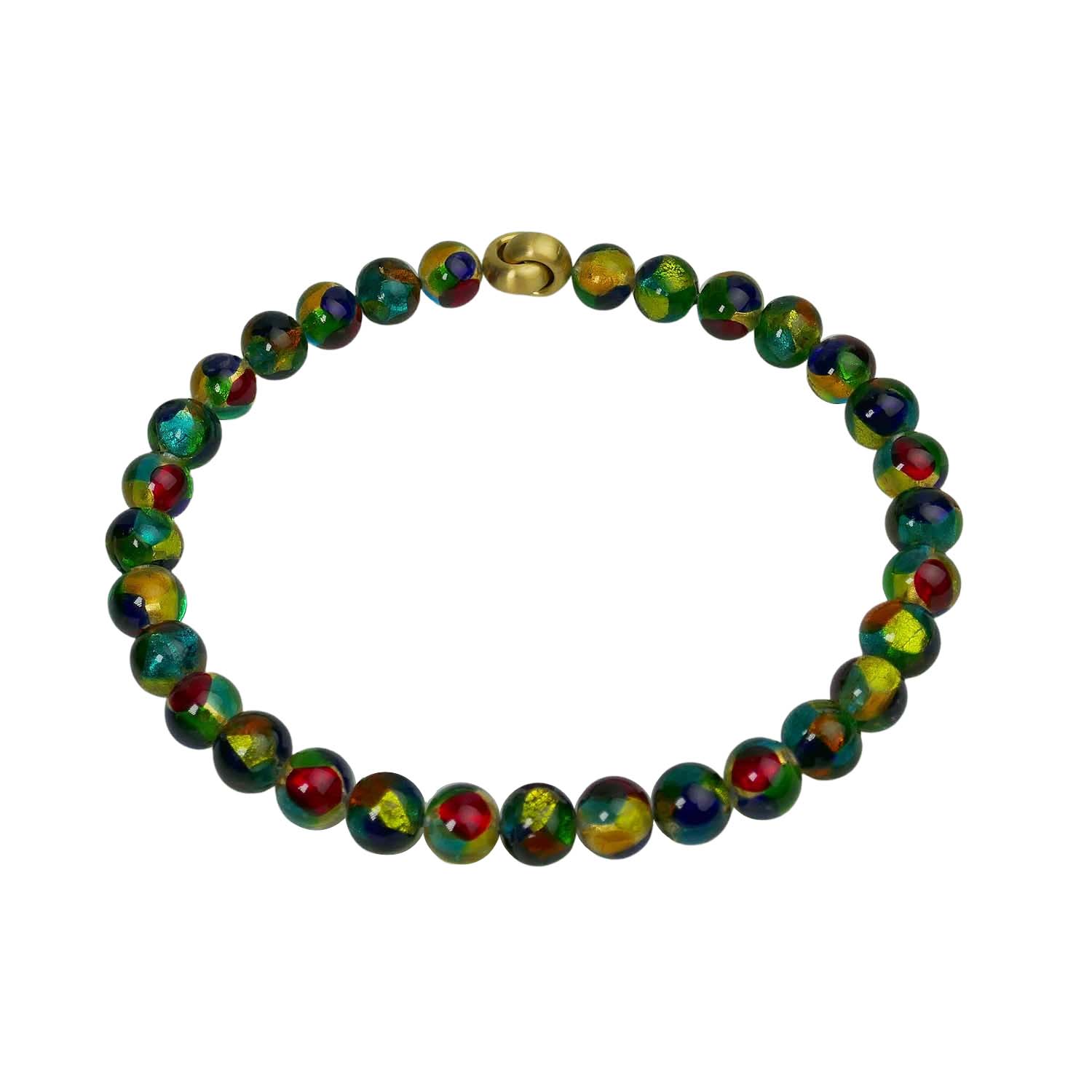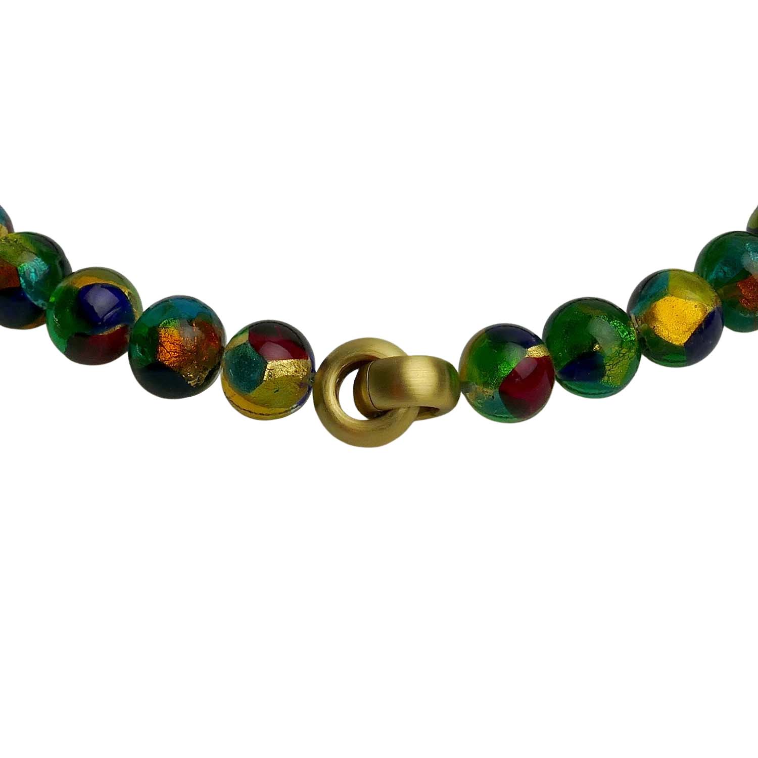 Seit vielen Jahrhunderten besteht die Tradition der Glasperlenherstellung auf der venezianischen Insel Murano. Früher als Zahlungs- oder Tauschmittel genutzt, werden die Perlen heute als kostbarer Halsschmuck getragen. Jede Perle wird in reiner Handarbeit hergestellt und von innen mit einer Feingoldfolie versehen (Weiß- oder Gelbgold 999/000). Dadurch erhält die Perle ein ganz bizarres Lüster und einen unverwechselbar schönen Ausdruck.