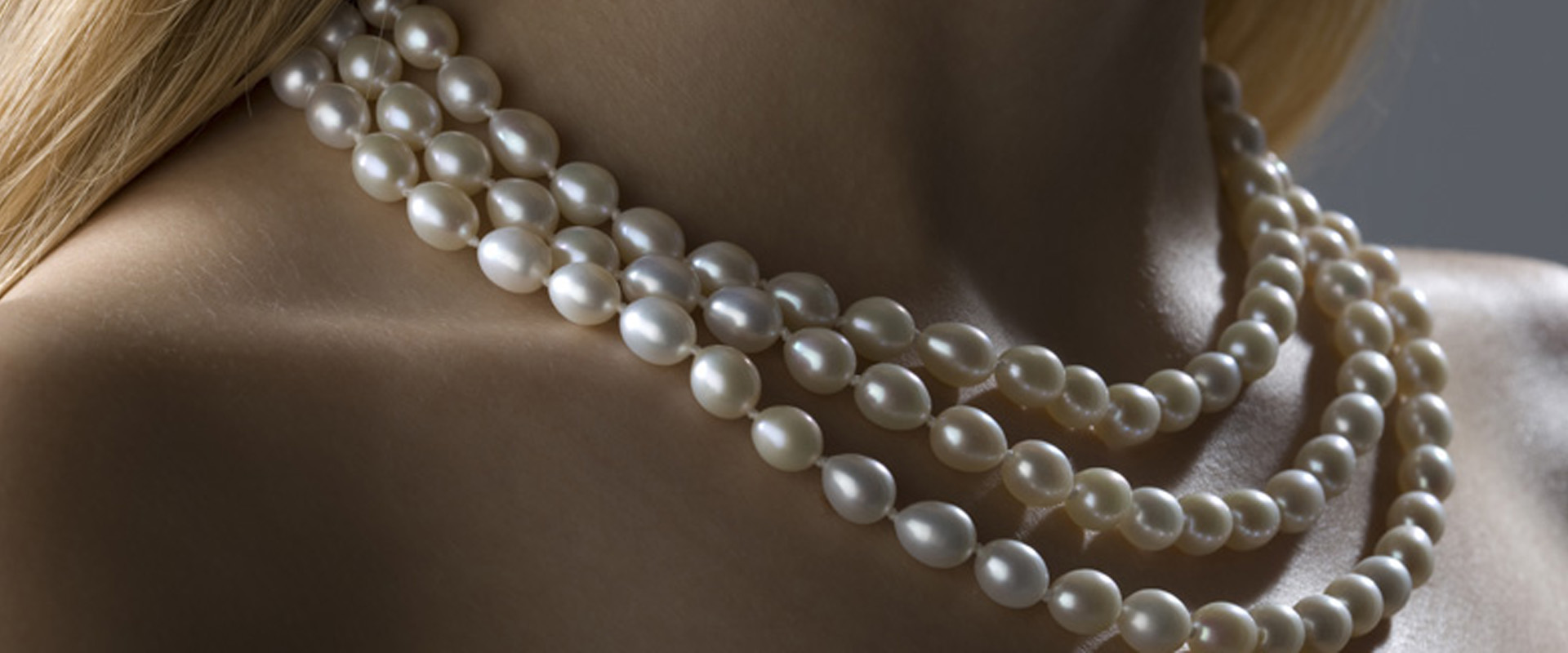 Die Zuchtperlen, die auf zwei Stahlseile gezogen wurden, haben einen fantastischen Lüster. Die Durchmesser betragen 5 und 7,5 mm.