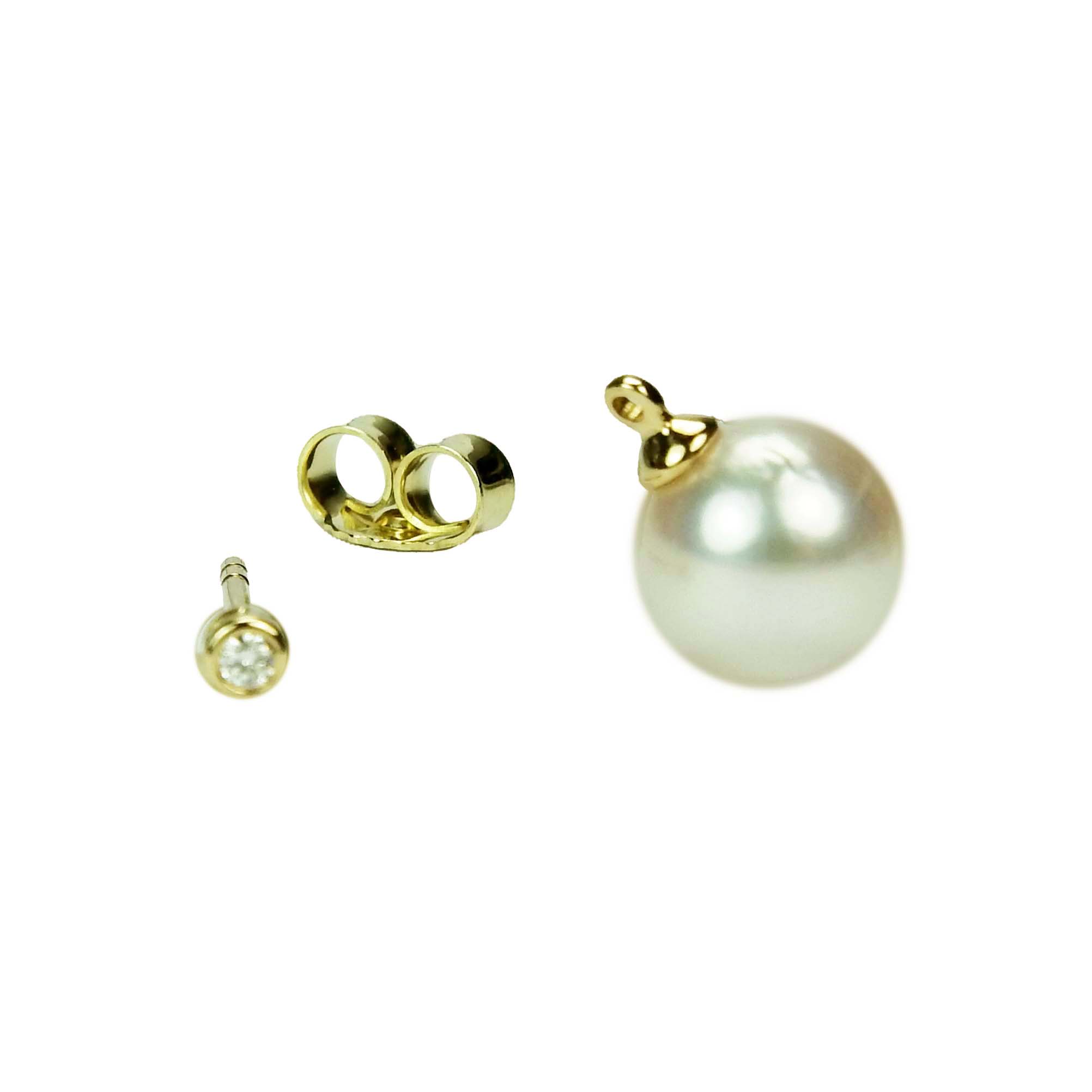 Diese Ohrstecker sind variabel und lassen sich auf zwei unterschiedliche Arten tragen: entweder als Perlohrstecker mit Brillanten oder als reine Brillantohrstecker, denn die Perlen sind abnehmbar! So haben Sie zu jeder Gelegenheit den passenden Ohrschmuck.