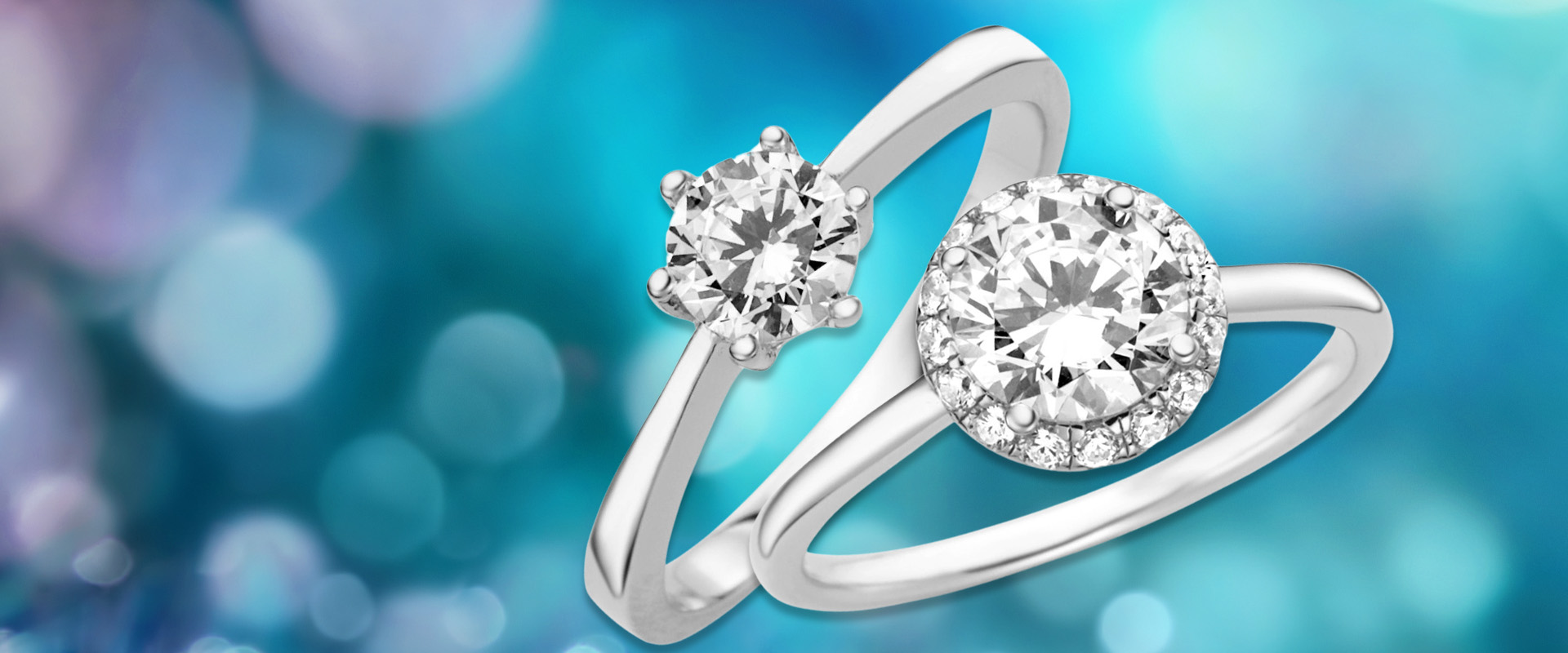 Ein Verlobungsring in Weißgoldoptik aus rhodiniertem Sterlingsilber mit funkelnden Zirkonia.