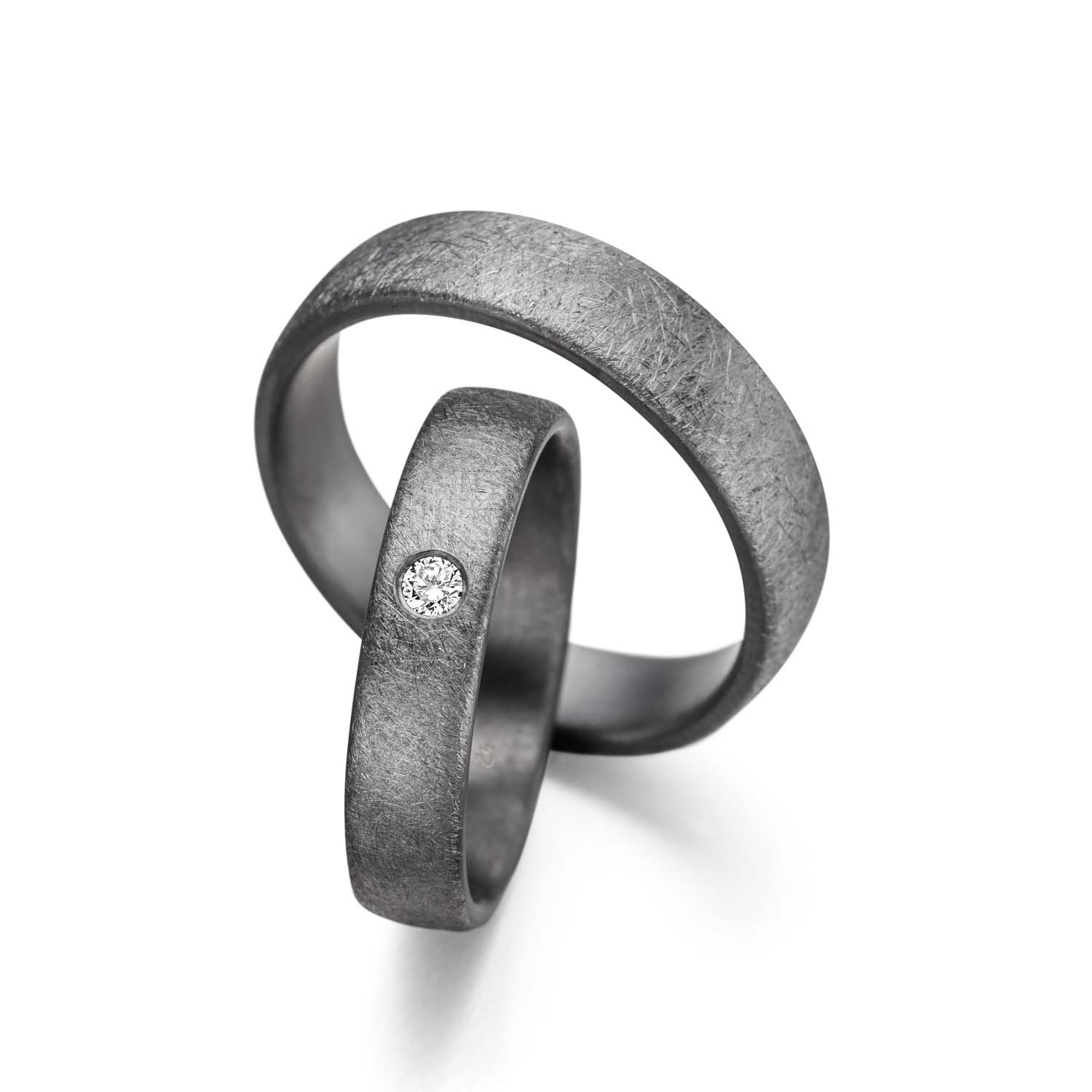 Der Brillant (0,04 ct., tw/si) kommt in dem anthrazitgrauen Material besonders gut zur Geltung.