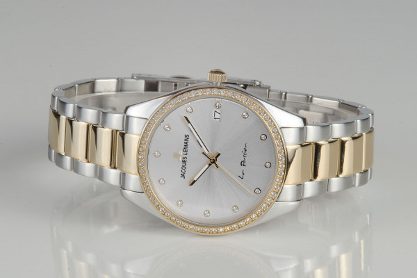 Die Damenuhr La Passion von Jacques Lemans ist mit ihrem goldplattierten Gehäuse, den funkelnden Swarovski-Steinen und dem edlen Sunray-Zifferblatt ein besonders schöner Zeitmesser.