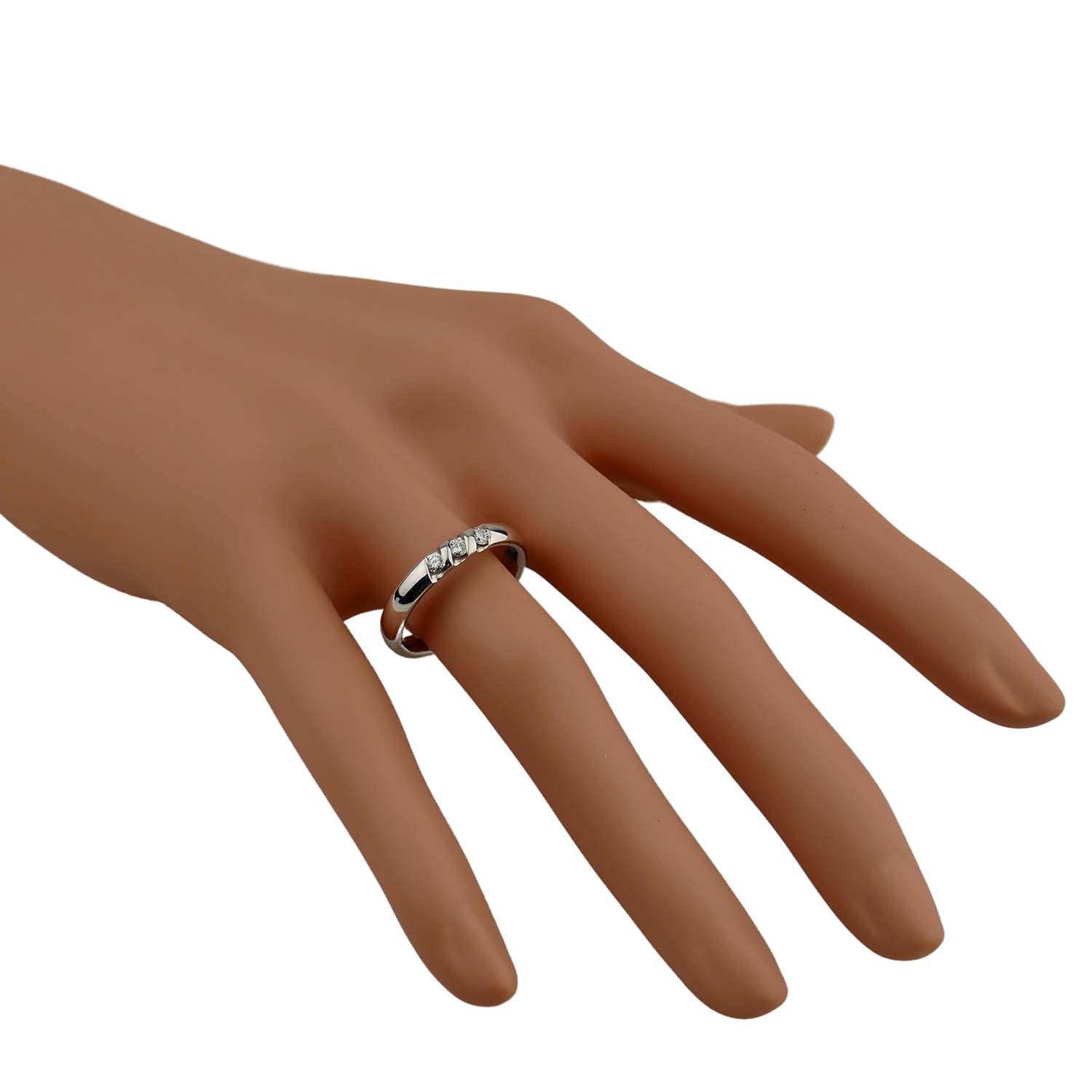 Der Ring ist 3,5 mm breit und 1,9 mm hoch. Er wurde voll massiv aus 585er Weißgold hergestellt.